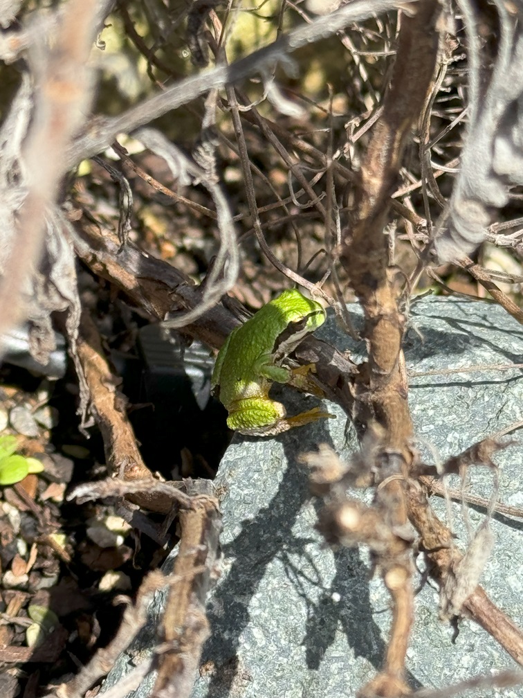 There’s a pond on our property, but it’s at least half an acre from the spiral garden, where I found this little tree frog! 🐸