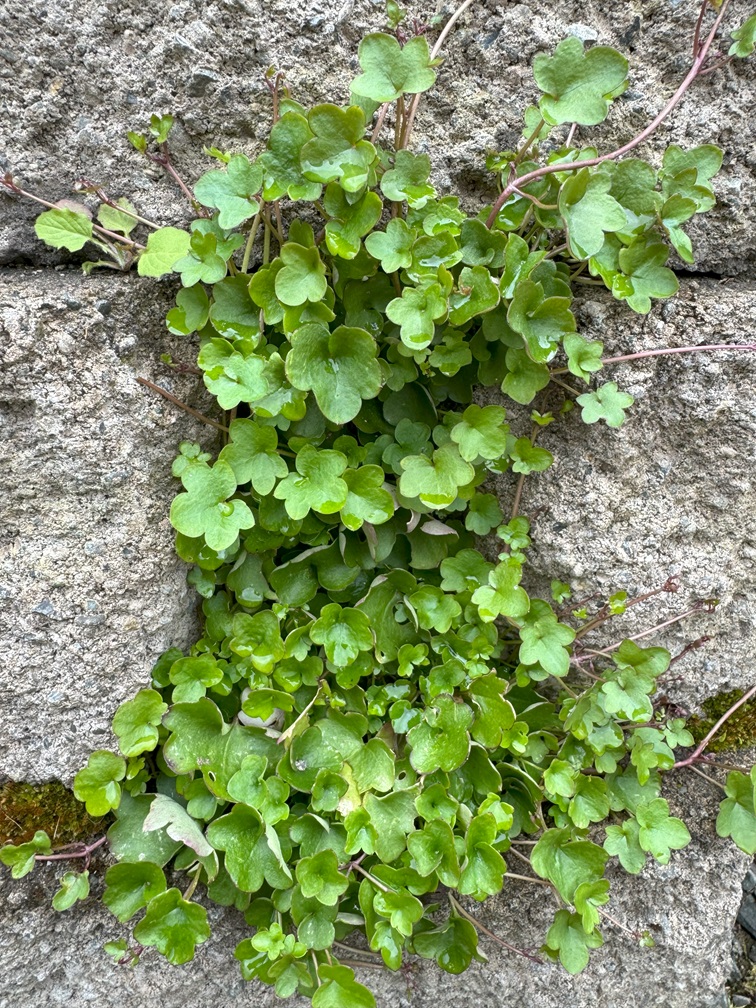 This is a type of ivy, and we’re also growing local succulent-like plants. While so many people are opposed to ivy, we love giving plants an opportunity to thrive where they aren’t a hinderance to the operation of our little farm — this ivy is more than content to peek through the cracks on this wall and we are more than content to let it!