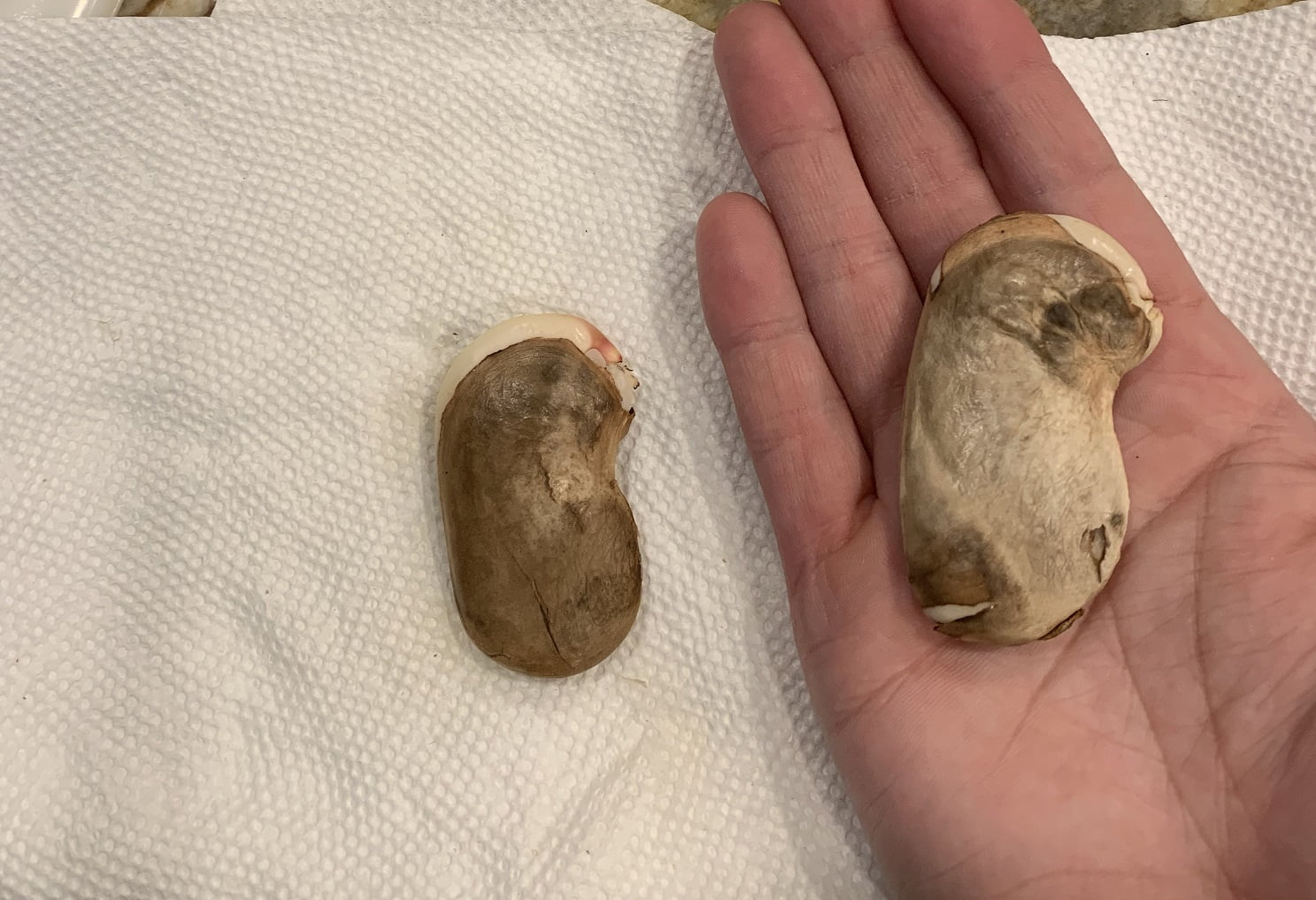 Turns out, yes! I scrubbed the flesh off, let it dry out, then cracked open the husk piece by piece and found THESE CHONKY BEANS. Mind blown.