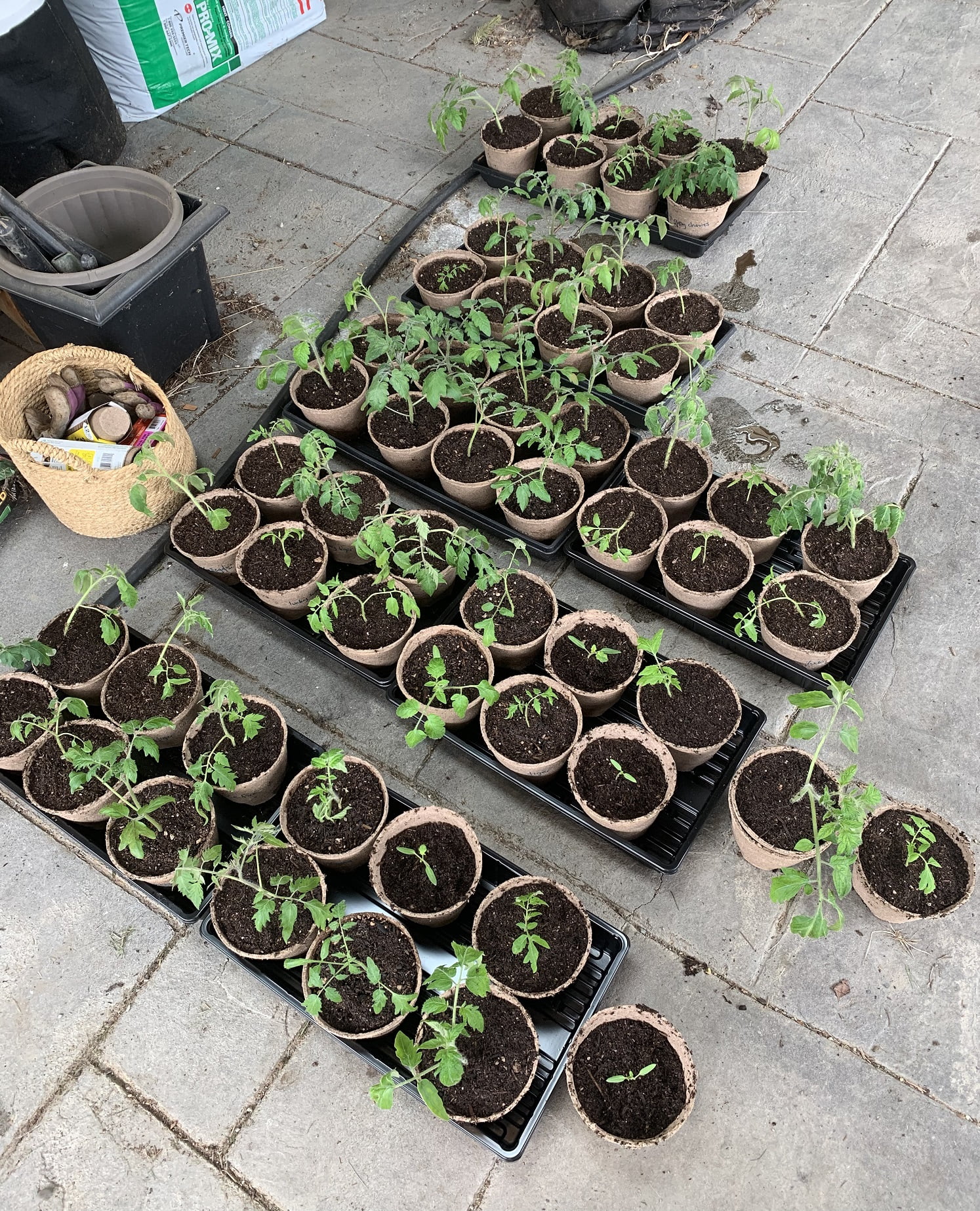 I went a little overboard this year, friends. I bought several of those pod trays with the corn starch netting so I could easily pot things up or transplant directly, which meant I planted 72 potential tomato plants.